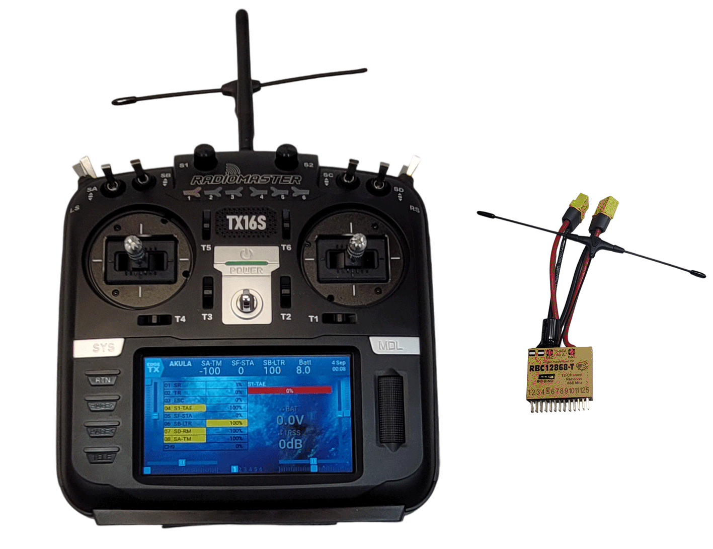 • RC-System TX16S transmitter (Tx) with 12-channel receiver (Rx) RBC-12868-T. Ready-to-run.*